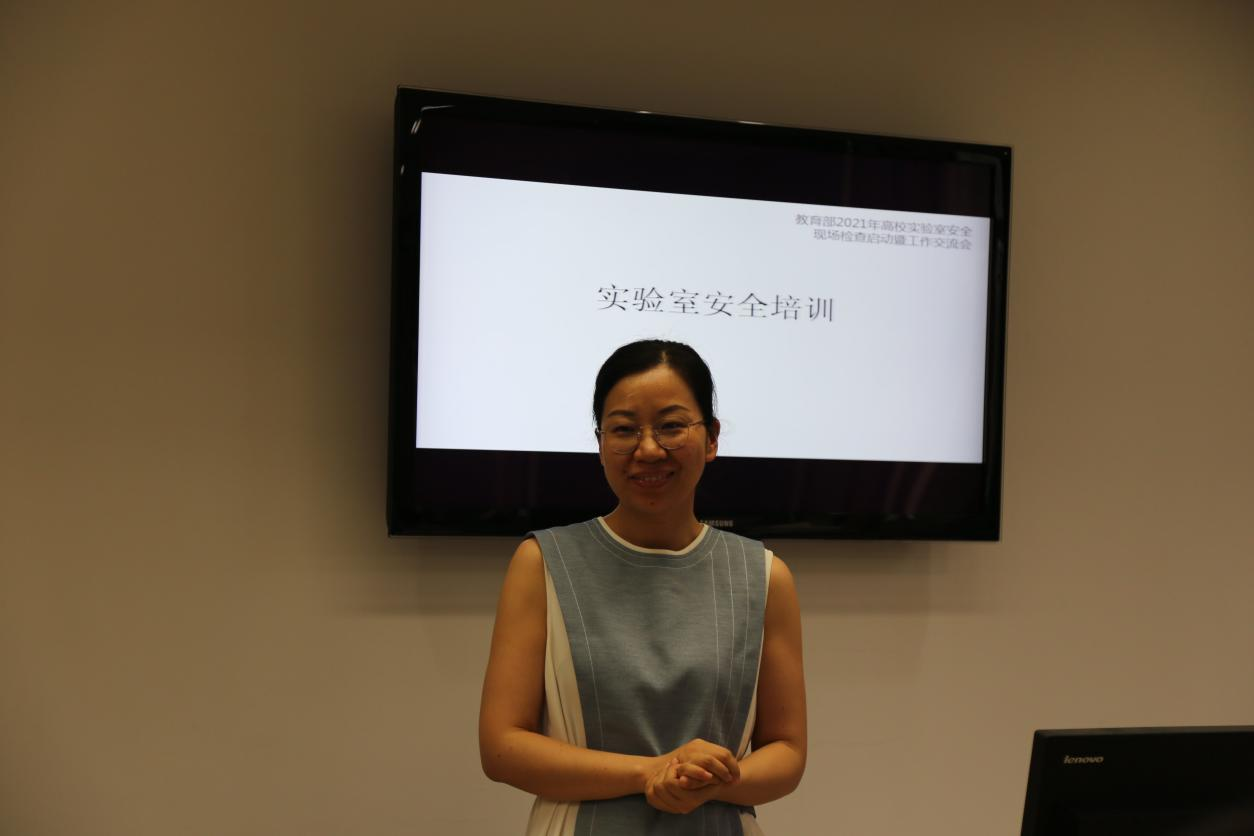 副院长陶方方结合《教育部办公厅关于组织开展2021年度高等学校实验室安全检查工作的通知》,介绍了实验室安全检查要点,特别指出了检查过程中容易被查环节。她结合自身实验室安全管理心得,强调实验室安全必须做到“五落实五到位”,以查促改、以查促建,以安全检查为契机,严格落实检查指标体系,保障校园平安建设。